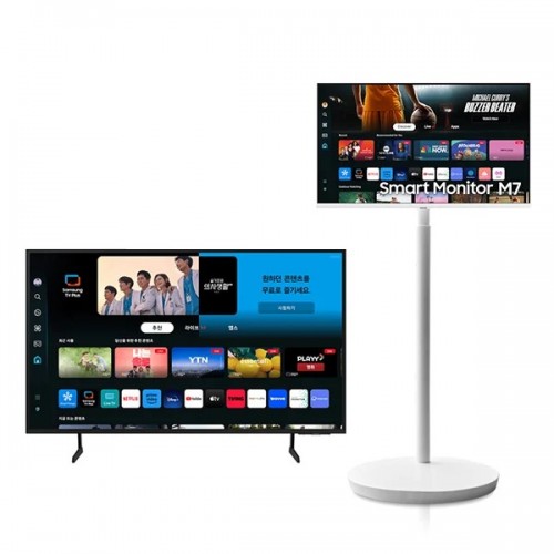 [삼성] 크리스탈 UHD TV 75인치 + 무빙스타일 M7 모니터 32인치 (화이트) + 풀 모션 슬림핏 벽걸이